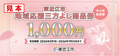 • 商品券の盗難、紛失、滅失または偽造等に関して東近江市は責任を負いません。